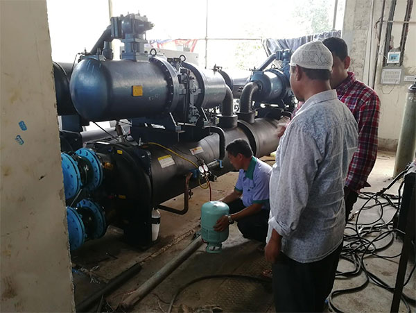 问题描述:项目前期由代理商找当地安装队伍自己安装,由于代理商缺乏系统安装经验,导致安装过程中冷却塔地基尺寸弄错,甲方提供的辅材不全,导致现场材料不全,我公司及时派出专业现场工程师的赶往项目现场指导安装,我公司现场安装指导人员通过和代理商及甲方人员沟通,克服重重困难,经过两个月,系统安装完毕并正常运行,并培训了甲方客户的操作人员,代理商通过这个系统项目积累了宝贵的安装经验。