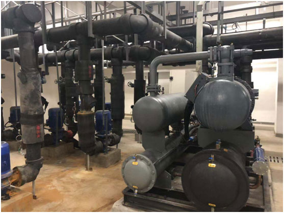 产品内容:2台满液式冷水螺杆机组(457kw、134A型)、1台吊顶式空气处理机6台吊顶式新风换气机以及1台转轮式新风换气机、244台风机盘管、5台60风冷模块机组、风机箱及风机以防火阀。从主机到末端全部涵盖。