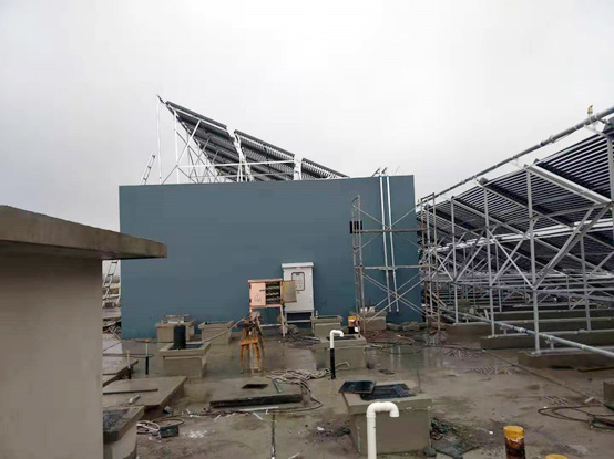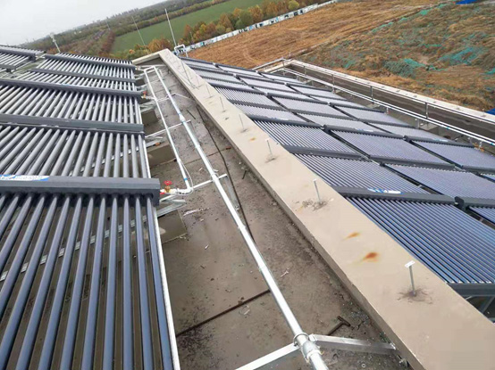 工程简介:顺义航天产业园卫星应用智能装备产业基地项目6#综合配套楼太阳能热水系统工程主要为职工洗浴使用,该系统设计50支真空管集热器36组,20吨水箱一个,辅助能源采用燃气炉,系统日产热水20吨左右,可满足每天约200-300人使用。