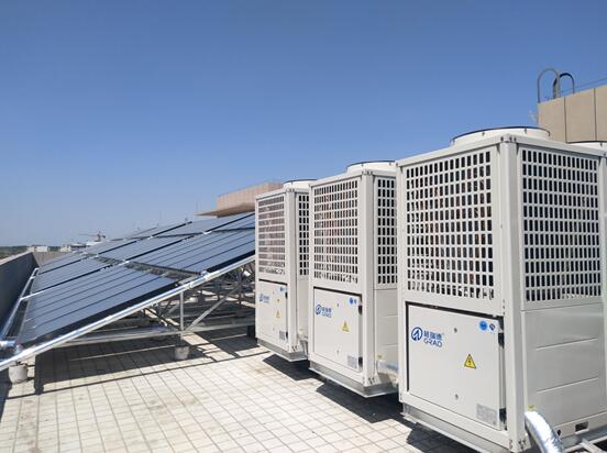工程简介:该项目热水系统以太阳能供热水为主,共采用格瑞德平板集热器300块,集热器面积600平方,该系统有效容积采用30立方不锈钢组合式水箱2台。格瑞德3台空气源热泵做为辅助能源,在阴雨天及冬季作为太阳能的辅助,配合太阳能系统一起来产生热水,3台25匹空气源热泵,制热量约240KW。