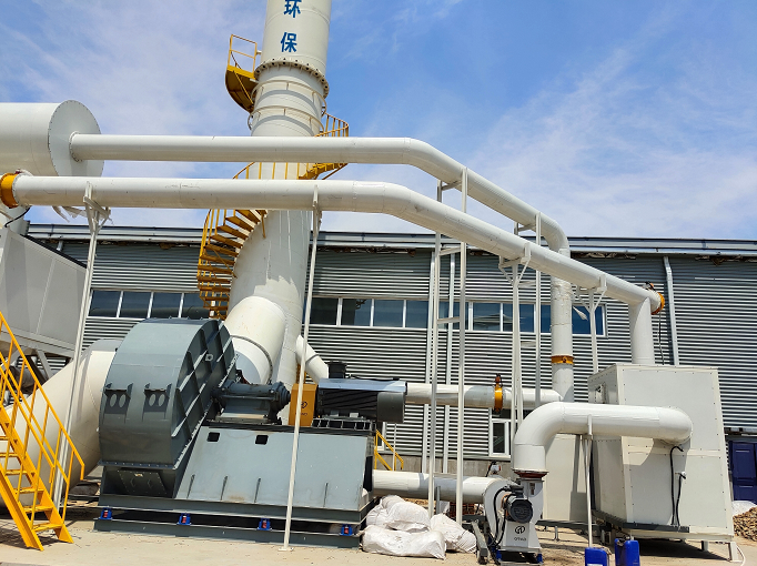 1台预处理设备、1台喷淋洗涤塔、1台除雾器、1台催化燃烧设备、1台活性炭净化装置、3台风机