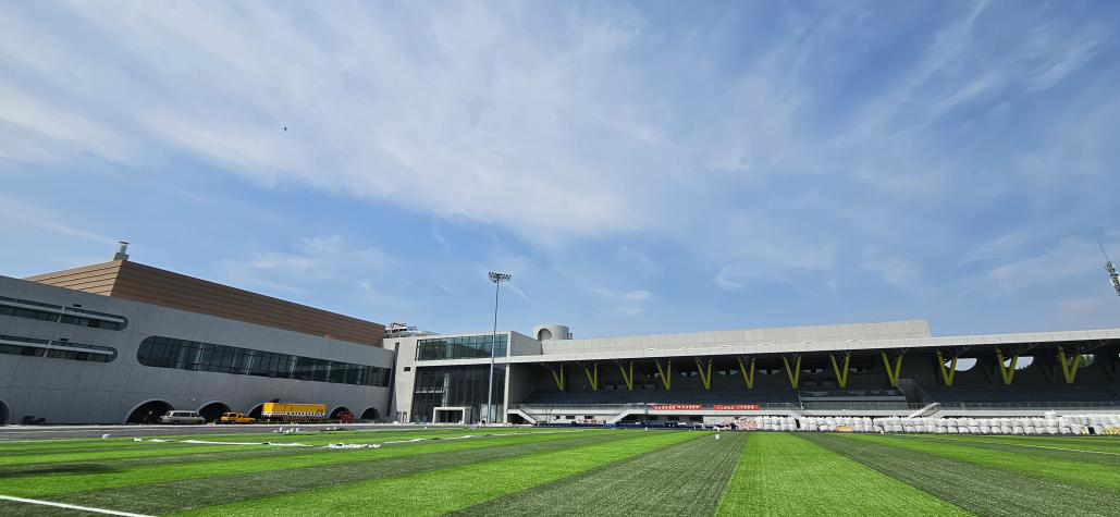 主要由体育健身中心和文化活动中心两大部分以及地下停车场组成,涵盖大小剧院、图书馆、各类体育场馆、足球场等。走进体育健身中心,这里也是“别有洞天”,攀岩墙、游泳馆、滑冰馆、篮球馆、羽毛球馆、网球馆、乒乓球馆,一应俱全。