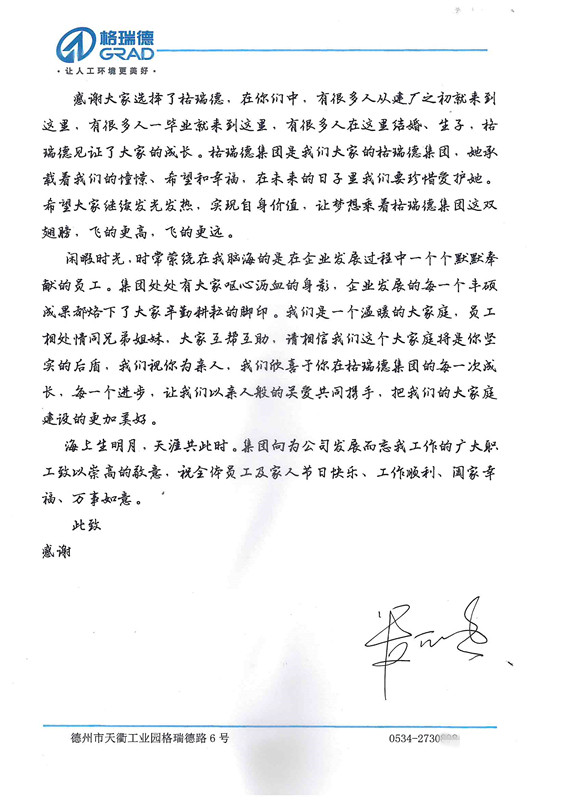 致格瑞德集团每一位员工的一封信