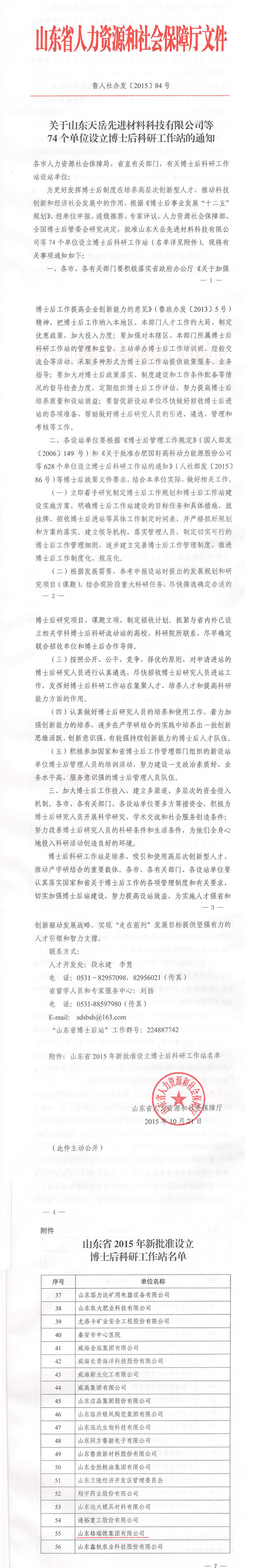 博士后科研工作站建站批文