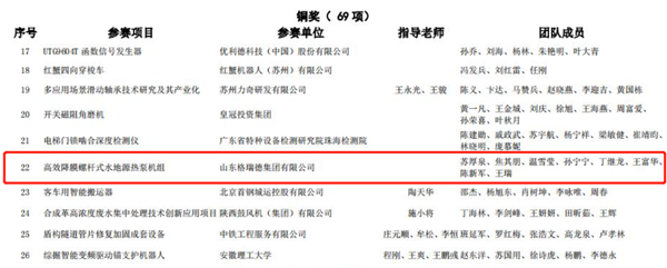 经选拔、初赛、决赛,最后经大赛评委会评审、组委会审核认定,格瑞德集团“高效降膜螺杆式水地源热泵机组”项目最终获得“2021第二届全国机械工业设计创新大赛”铜奖。