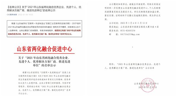 2021年12月,山东省两化融合促进中心根据《山东省深化“互联网+先进制造业”发展工业互联网的实施方案》《关于组织2021年山东省两化融合突出贡献奖项评选活动的通知》等有关文件,经业务主管部门初审推荐、专家评审等程序进行评选,格瑞德集团荣获“2021年山东省两化融合优秀企业”