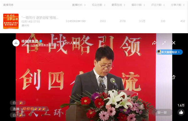 董事长针对2022年向全体员工作出工作部署,要求全体员工要发扬格瑞德人吃苦耐劳、不断学习、团队合作等宝贵精神,继续坚定不移推动集团高质量发展、良好效益发展、健康持续发展。集团将继续发扬努力拼搏、开拓创新的精神,凝聚全员力量,以更加豪迈的创业激情,坚定不移地走创新驱动、成功转型的发展道路,为实现成就百年基业年企业愿景,为实现集体智慧、人人出彩的个人梦努力奋斗,再创辉煌