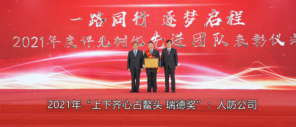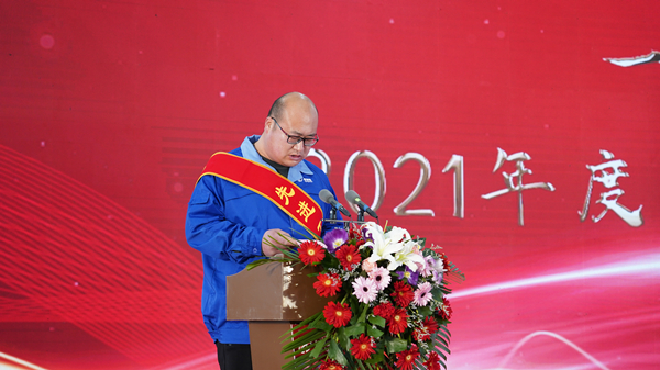 先进团队瑞德奖获奖代表人防公司总经理王永刚、先进个人工匠之星风电公司工段长祁志丛发表了获奖感言。王总认为“瑞德奖”是集团对人防公司2021年工作的高度肯定,并表示人防公司虽然遇到了很多困境,但通过集团的大力支持和领导班子的不懈努力、公司全体员工的积极拼搏,公司渡过了难关并取得了璀璨的成绩。在新的一年里,人防公司将由上到下团结一致、把握机遇、面对挑战,以保证并不断提升产品质量为基础,开拓创新,为集团发展开创新的辉煌。