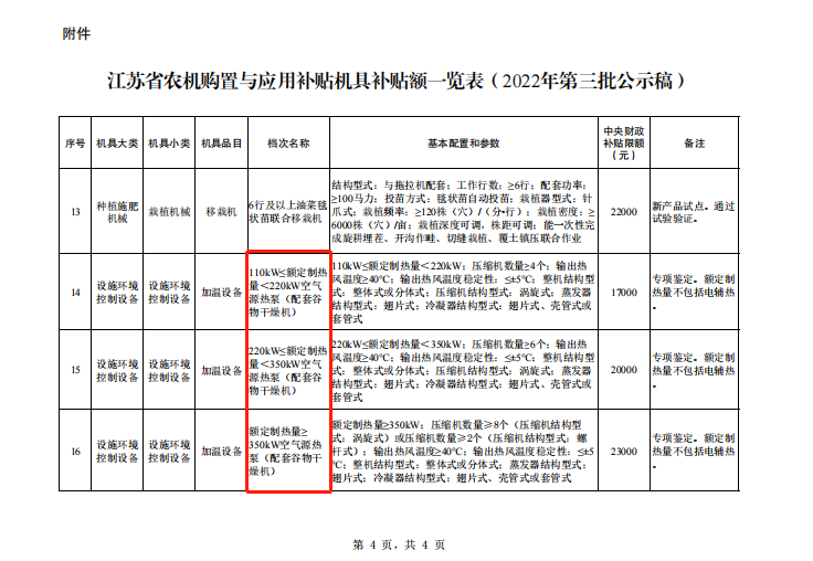 江苏省:空气源热泵(谷物干燥机)补贴17000-23000元
