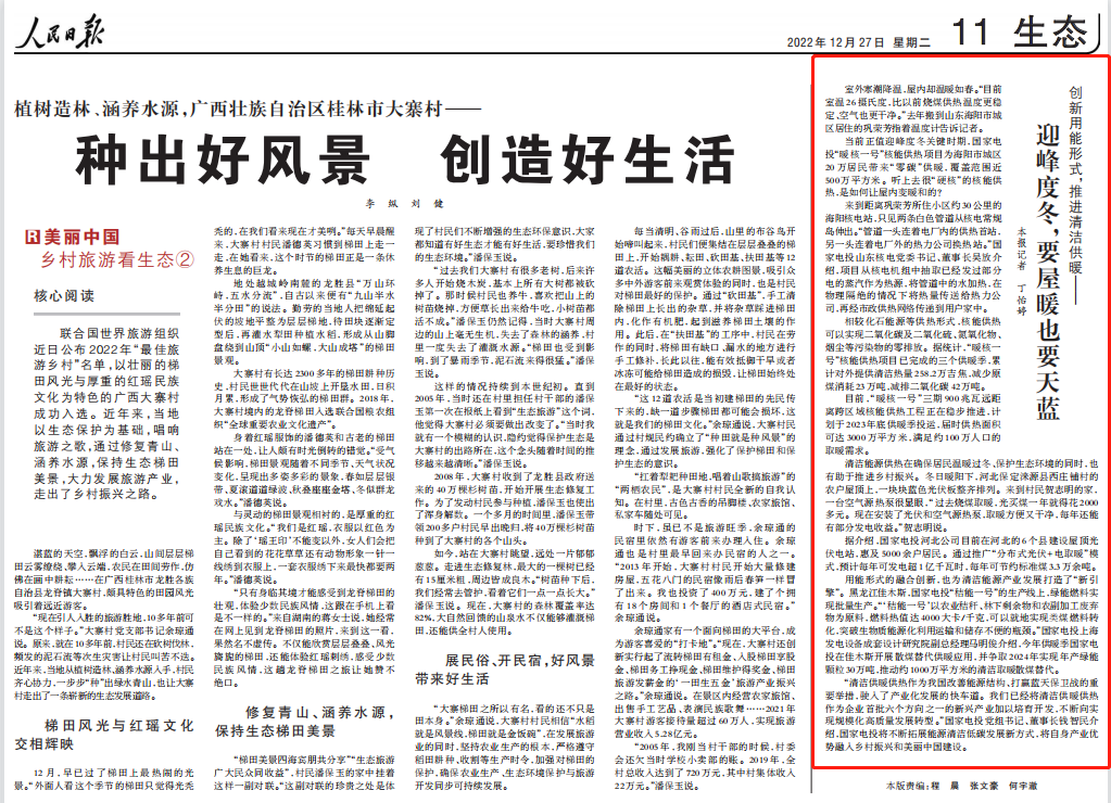 “清洁供暖供热作为我国改善能源结构、打赢蓝天保卫战的重要举措,驶入了产业化发展的快车道。我们已经将清洁供暖供热作为企业首批六个方向之一的新兴产业加以培育开发,不断向实现规模化高质量发展转型。”国家电投党组书记、董事长钱智民介绍,国家电投将不断拓展能源清洁低碳发展新方式,将自身产业优势融入乡村振兴和美丽中国建设。