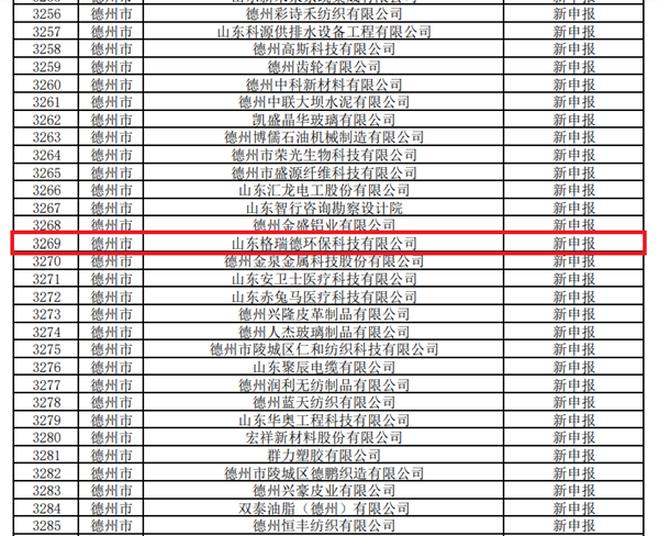 近日,山东省工业和信息化厅下发通知,对山东省2023年度专精特新中小企业名单进行公示。记者获悉,4087家企业入选山东省2023年度专精特新中小企业,442家企业入选2023年度通过复核的专精特新中小企业。2023年4月24日,山东格瑞德环保科技有限公司上榜山东省2023年度专精特新中小企业公示名单。