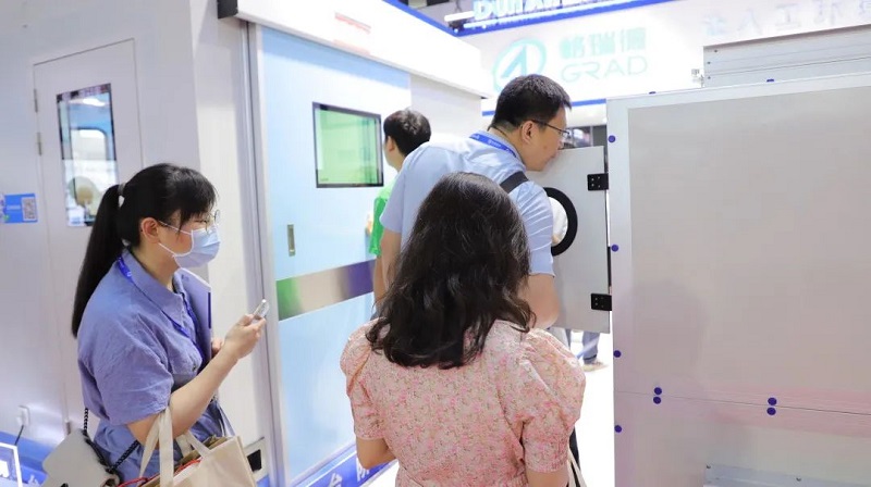 集团洁净样板间、净化组合式空调机组及直膨式净化空气处理机组获得现场观众一致好评。格瑞德净化展示样板间由净化彩钢复合夹芯板和净化密闭门窗组成,现场安装方便快捷,广泛适用于医院、制药、食品、电子等领域。净化彩钢复合夹芯板是由格瑞德集团自主研发、设计、生产的一种加强型的复合夹芯板,可广泛用于高科技电子、医药、化工、食品等行业的净化房围护、吊顶,以及工业厂房、仓库、冷库、烤炉、空调器壁板等洁净领域。