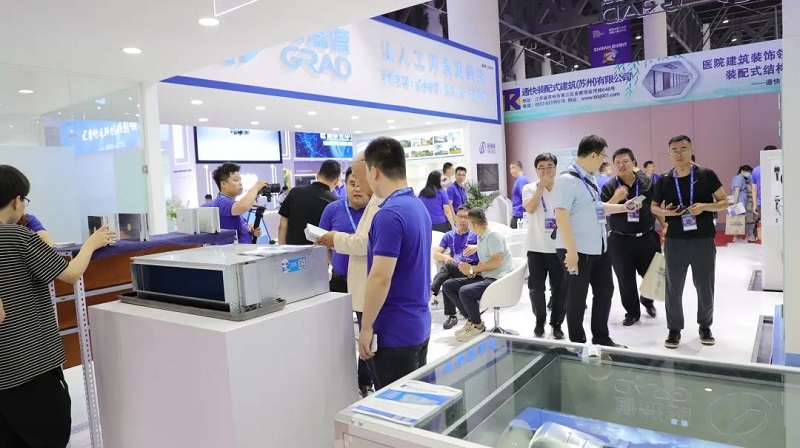 本次展会,格瑞德集团携净化组合式空调机组、洁净样板间、直膨式净化空气处理机组、净化杀菌风机盘管、净化中效风机箱等众多展品强势亮相,为医疗建筑行业提供医院净化整体解决方案,以全产业链成就行业新高度,全方面展示格瑞德创新力、科技力。