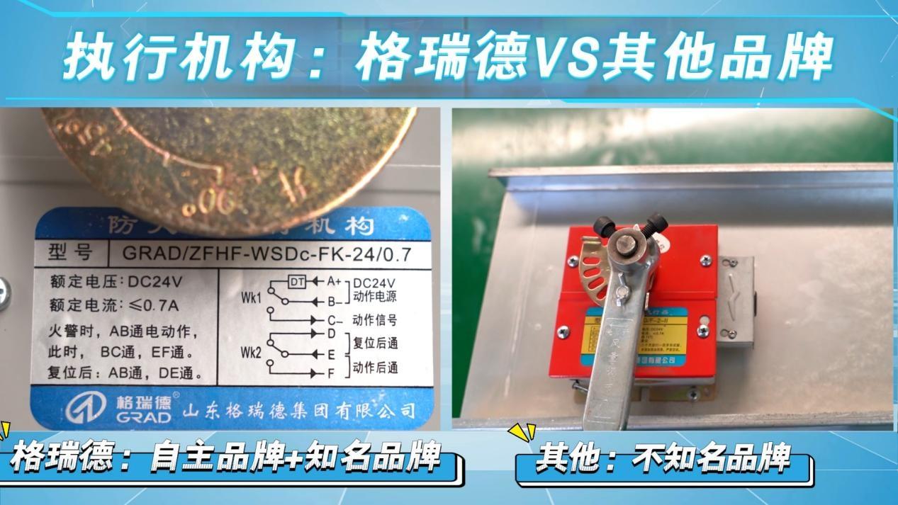 格瑞德防火阀拥有“格瑞德”自主品牌执行机构,此外配套执行机构有“东灵”、“凡灵”、“搏力谋”、“西门子”、“江森”等国内外大品牌。