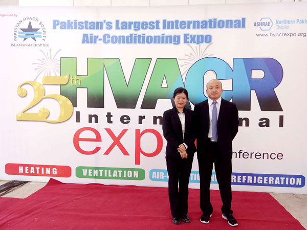 2018年4月7日,为期三天的巴基斯坦第25届HVACR制冷展展会圆满落幕。巴基斯坦空调制冷展是巴基斯坦的专业空调通风供暖及制冷行业展览会。由巴基斯坦制冷学会主办,每年一届,在伊斯兰堡、卡拉奇、拉合尔三个城市轮流开展。中国是巴基斯坦重要的贸易合作伙伴,同时是大的进口地。中国分体式空调目前在巴基斯坦占有约71%的市场份额。格瑞德集团销售总工刘建华和国贸工程公司销售一部部长翟晓卉协助我司巴基斯坦代理参加此次展会。