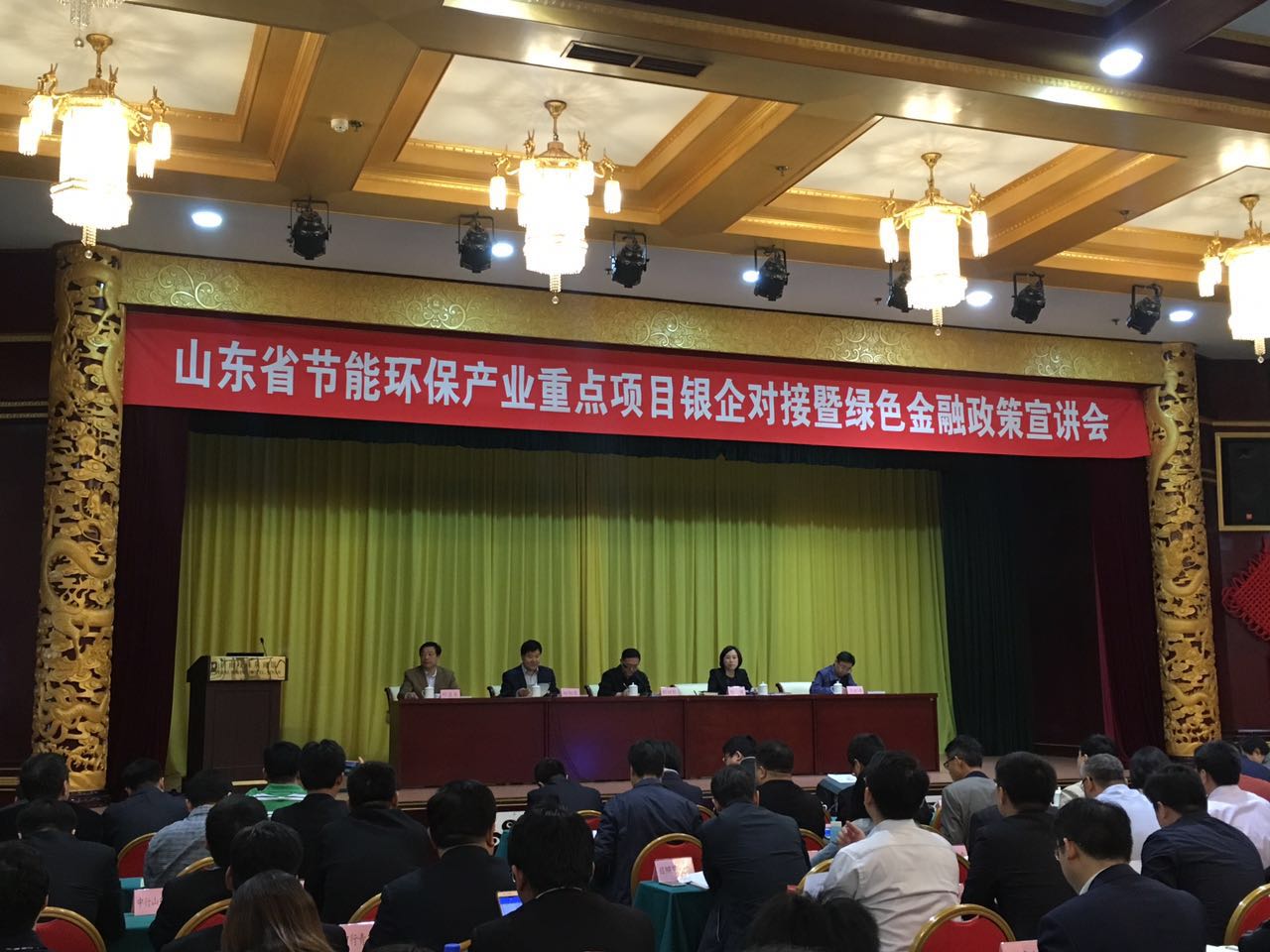 4月19日,山东省节能环保产业重点项目银企对接暨绿色金融政策宣讲会在济南举行,会议由山东省经济和信息化委员会、山东省人民政府节约能源办公室协同人民银行济南分行共同主办。省政府节能办刘绪聪主任、人民银行济南分行刘健副行长及全省各地节能办代表、各银行代表、环保产业服务机构代表及企业代表参加了会议。