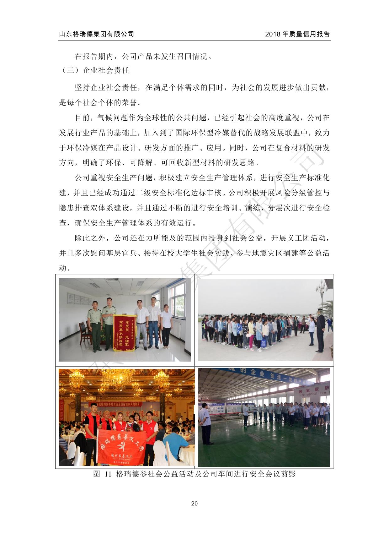 2020年,集团捐赠20万元助力新型肺炎疫情防控。 为紧急赶制防疫应急设备、为疫情定点医院提供通风净化设备,集团1月28日复工,2月17日按照德州市委市政府要求,为济宁任城监狱紧急赶制应急物资。在疫情期间,格瑞德集团勇担重责,为陆军80集团军医院、阳光融合医院等定点医院的隔离病房提供通风净化设备、助力德州市人民医院开发区分院方舱PCR实验室的建设,并获得第二批国家疫情防控重点保障企业称号。